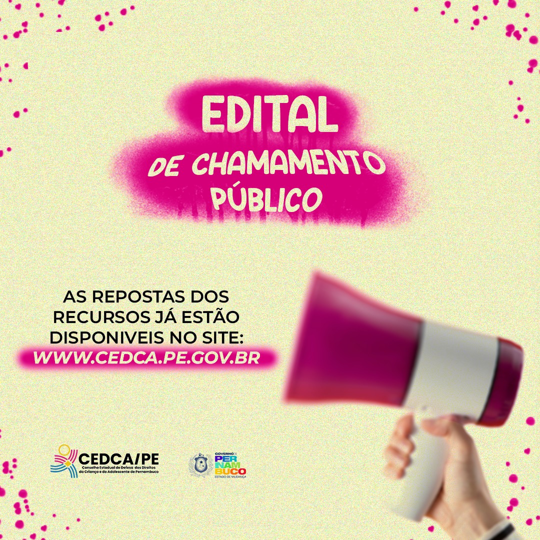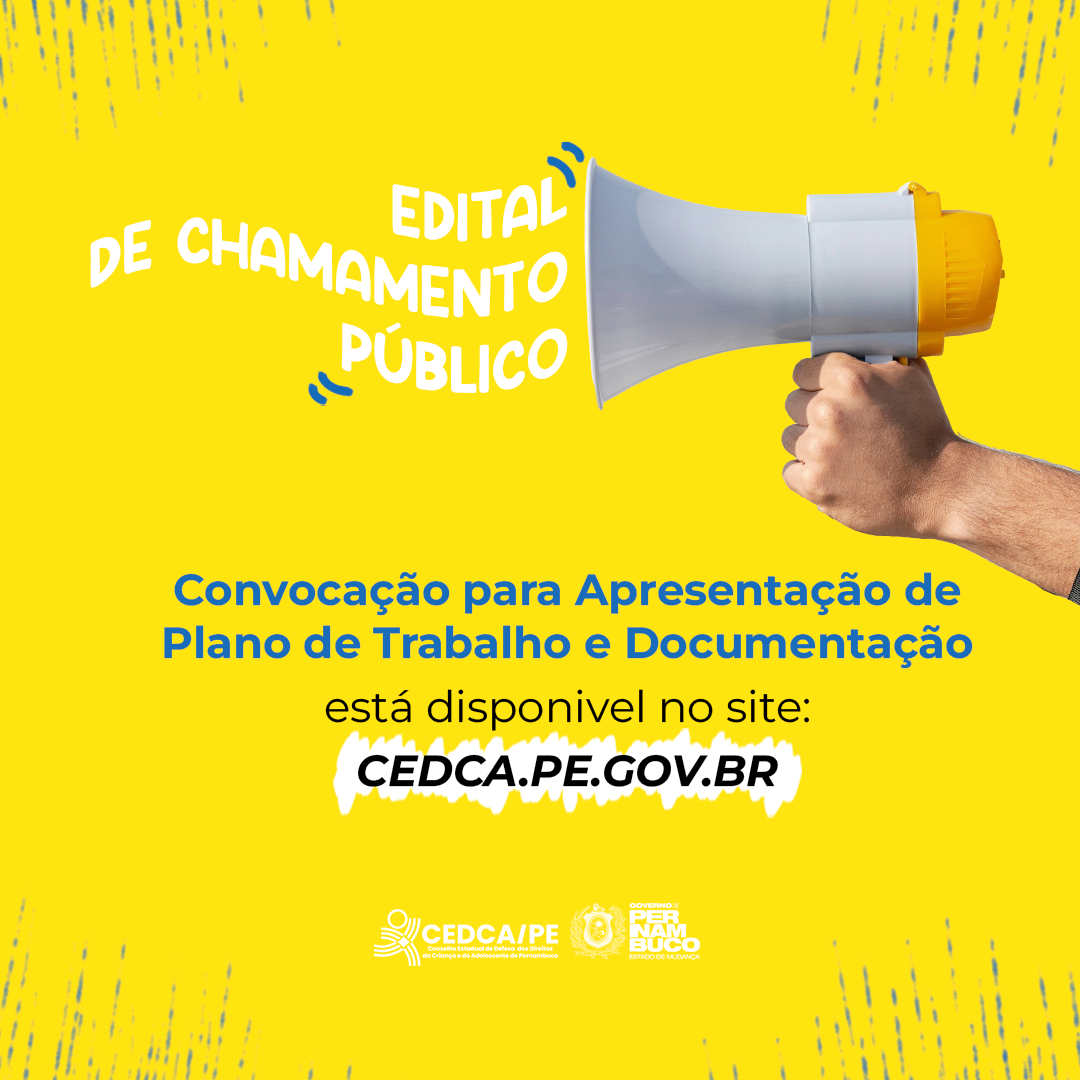 O CEDCA/PE convoca as Organizações da Sociedade Civil (OSC) selecionadas no processo de seleção para apresentarem o Plano de Trabalho e a documentação comprobatória que ateste o cumprimento dos requisitos exigidos para a celebração do Ter...