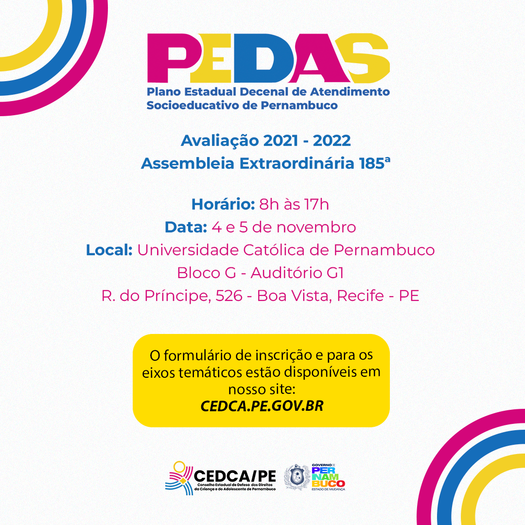 A Avaliação do Plano Estadual Decenal de Atendimento Socioeducativo de Pernambuco (PEDAS) está com inscrições abertas para a participação de todos os interessados na análise dos anos de 2021 e 2022. Essa é uma oportunidade importante para...